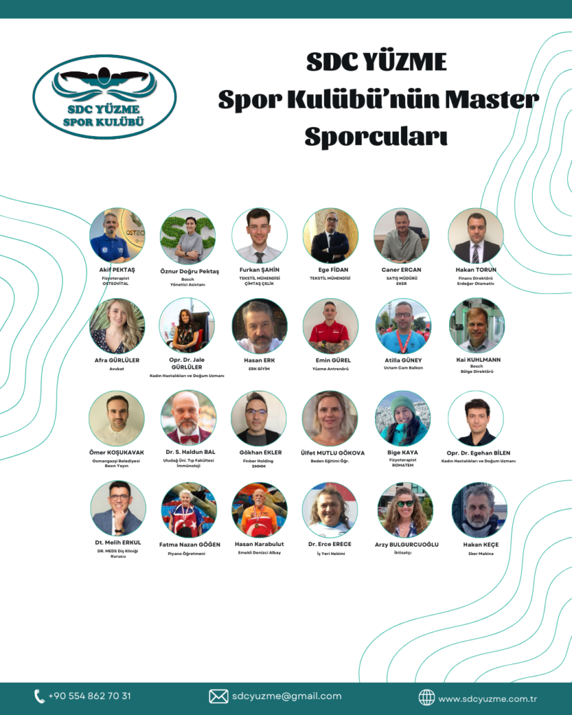 25 Yaş üstü master yüzme spor kulübümüz haftaiçi 2 gün havuz ve 1 gün kara antrenmanı yapmaktadır. Kısa kulvar ve uzun kulvar havuz yarışlarının yanısıra İstanbul ve Çanakkale Boğazı dahil tüm açıksu yarışlarına katılmaktadır. Bu benzersiz deneyimlere ulaşmak için bize ulaşabilirsiniz.